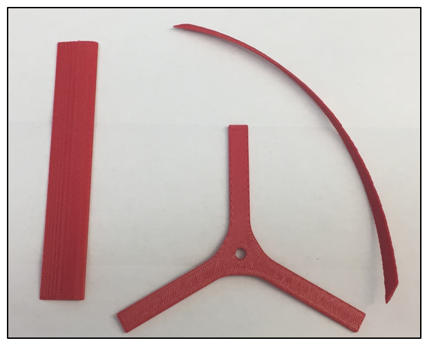 From these two rounds of printing it was determined that it would be possible to print all of the parts designed using the Statasys F370 with some adjustments to the resolution settings. However, it is preferred that adjustments be made to the designs and print process to make the Ultimaker 3’s prints successful. Some adjustment considerations include increase the minimum chord length of the blades to increase part thicknesses and re-arranging the printing orientation of the blades. Additionally, some changes to the printing setting will be explored to hopefully better maintain the desired cross-sectional shape of the blades.