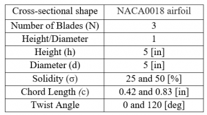 Initially, the four separate turbine blades were created in SolidWorks based on the parameters displayed in Table 1.