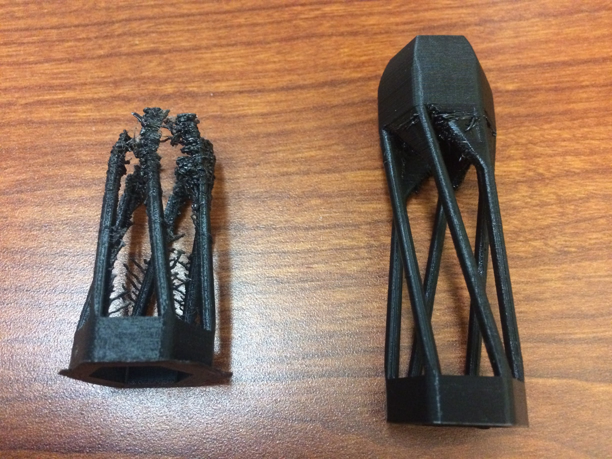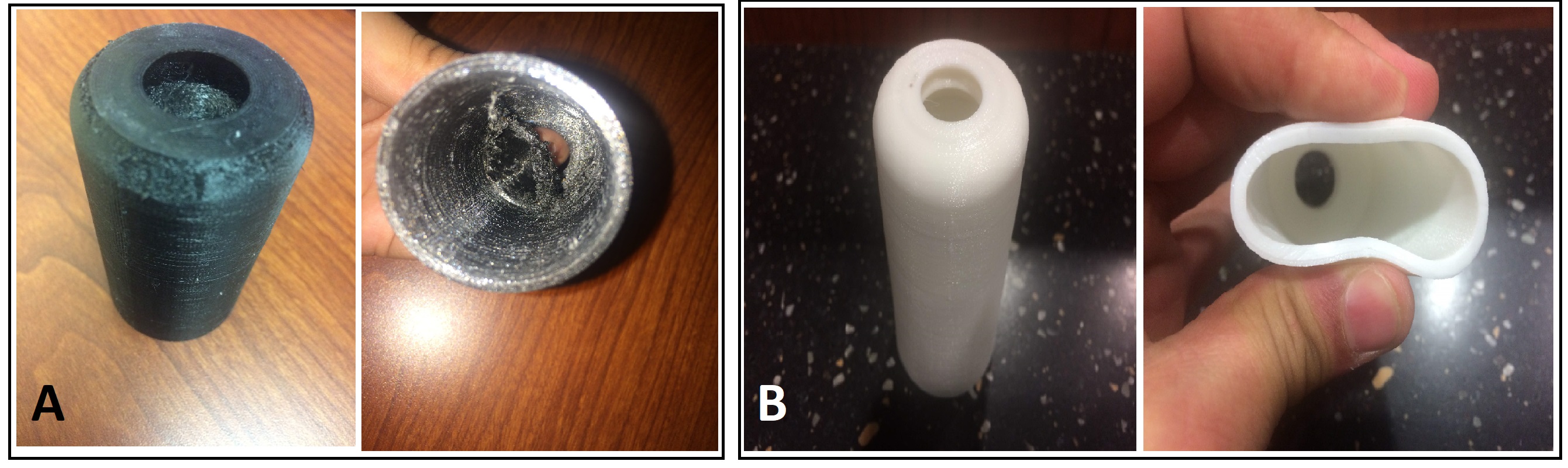 Figure 5: Two prints for Design2, Failed (A), Successful (B)