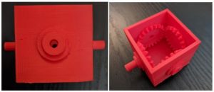 Figure 2 – Initial gearbox print design. The design was used as a proof of concept to help determine the spacing needed between the gear shafts and the wall.