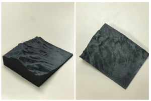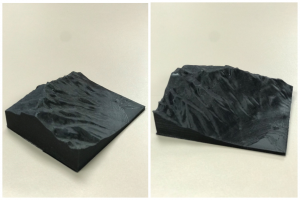 We were able to create a printable model of a section of Jackson Hole Ski Trail. However, the model did not have the amount of detail we are hoping to achieve (more on that later). Figure 1 shows our initial print, that printed in just over nine hours. Printing was done using FDM due to its economic viability, especially during prototyping and initial phases. The idea is to optimize our process and create a model that has our desired level of detail, and then print using SLS to achieve a greater resolution.