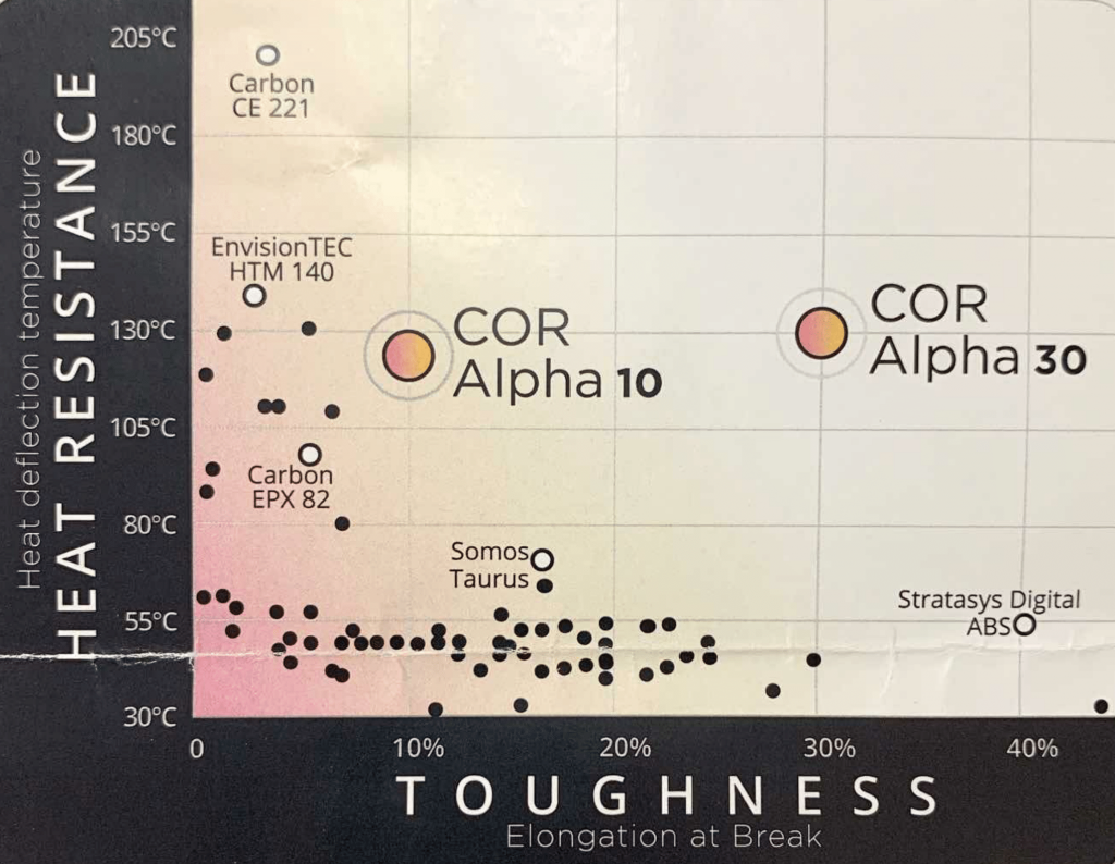 Seven trials were done for this project. FFF was used for the first three trials and SLA for the rest . Table 1 summarizes all the trials and the print time. Trial 7 had the best properties since it lasted 40 cycles before failure, however it won’t be the last material to be tested. Digital ABS from Stratasys (Polyjet)and COR Alpha 30 from Polyspectra (Digital Light Projection) will be the next materials to test (Figure 1).
