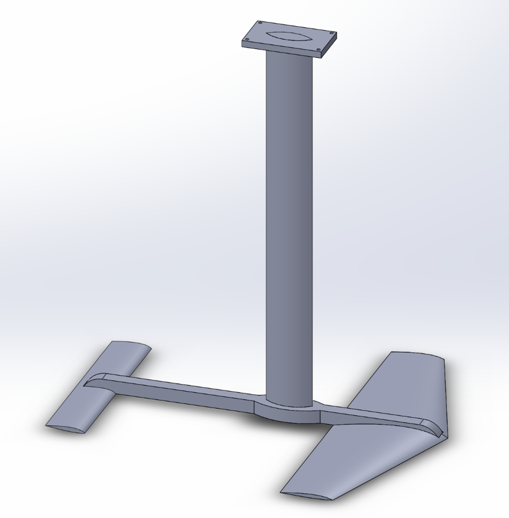 The CAD model is based on the basic shape and size of carbon fiber hydrofoils currently in the market. The model illustrates several challenges of the project. First, some of the parts are much too large to be printed in one piece (for example, the mast is 30 inches long). To show that a full-size hydrofoil can be 3D printed, we will have to devise a way to make parts in several pieces that can be put together after printing. Second, the shape and application of the parts will make print orientation very important. Both strength and resolution will be affected by the print orientation.