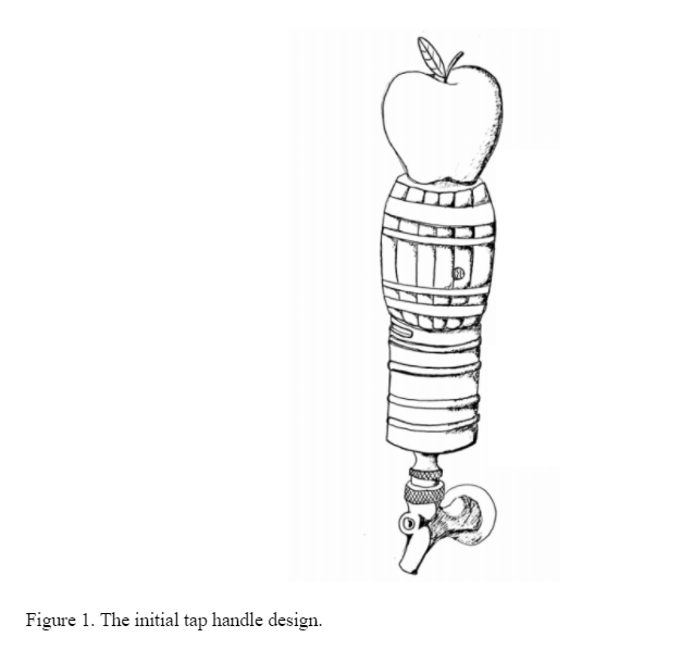 Tap handles are a vital component in a beverage’s branding. Owner of the local brewery Working Draft Ryan Browne called them a “mini-billboard” to the consumer. However, there is a hurdle to this point-of-purchase advertisement: cost. Kelsey Cooper, a project manager at Taphandles in Seattle, WA, estimates that the unit price for small (less than 100) batches of handles can reach over $30 per handle. The ME 514 team found a local cider maker, owner of Hidden Cave Cidery Walker Fanning, who needs a tap handle for his opening tap room in Middleton, WI. Specifically, he needs a tap handle for his barrel aged ciders.