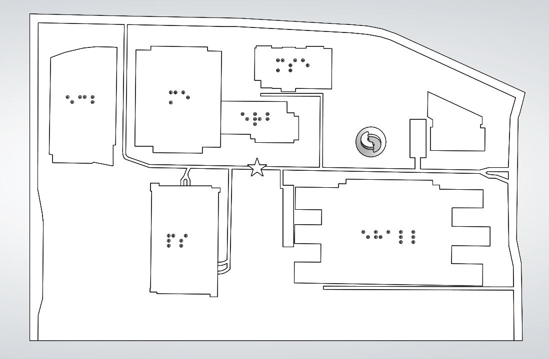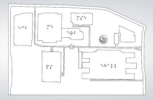 Figure 1: Initial Design for a Tactile Map of the Engineering Campus depicting Braille and “You Are Here” Identifiers.