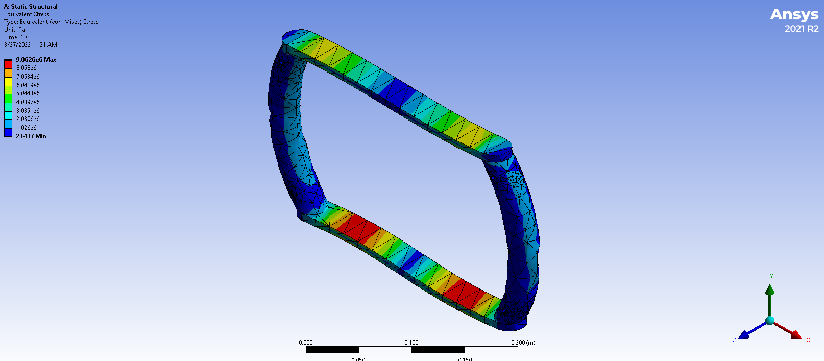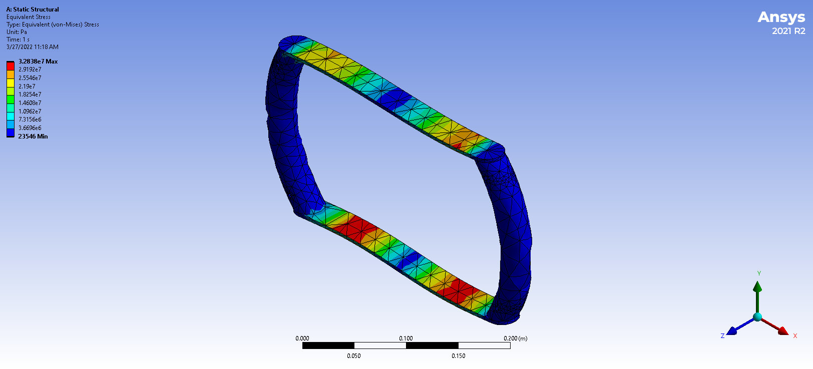 Figure 3: Results of the second stress test in Ansys
