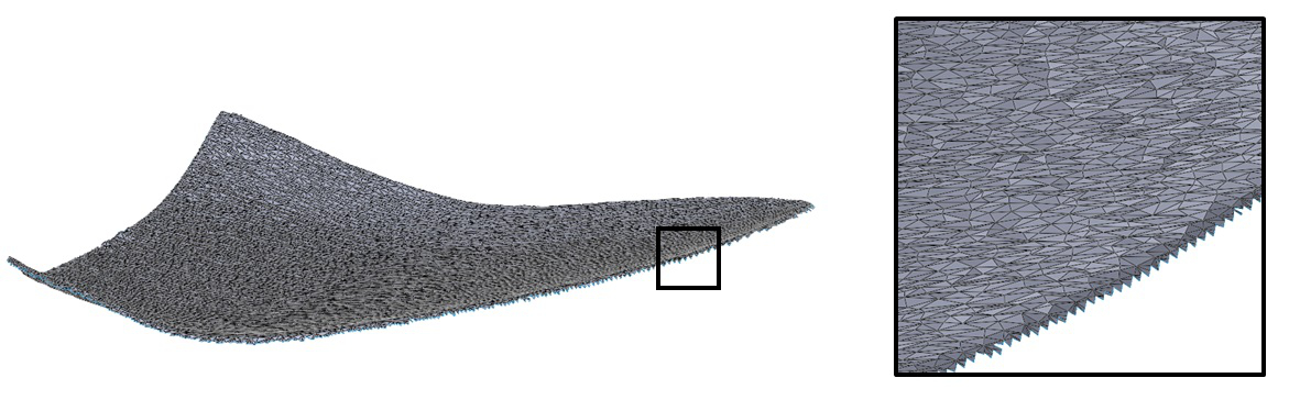Our customized insole CAD model is created through 3D scanning, which means it is a fairly complex STL file converted from a point cloud data. Here I will consider only the forefront of the insole. Commercial software packages such as SolidWorks cannot easily handle or manipulate these complex STL files and crash more often than not. Further, since the STL file is comprised of many small triangles(as shown in the figure below), projecting it unto the platform may not always be trivial and might result in inverted surfaces. Fortunately, there is a practical solution for this problem based on Boolean operations, which I will explain in the remainder of this post.