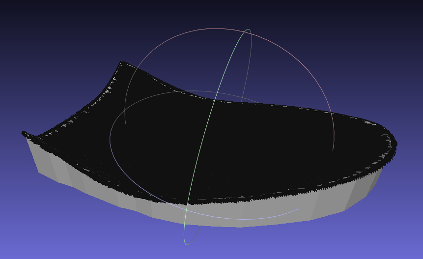 Some printers might automatically create supports for different materials, but for us to use the available FlashForge dual-material printer, we first need to provide two STL files, one for each material phase. In our case, one STL for the flexible material (insole) and one for ABS or PLA (support structure). The obvious procedure that comes to mind is to (1) import the insole to a CAD software such as SolidWorks, (2) project it onto the platform plane and (3) the solid space between insole and its projection will become the support structure. Unfortunately this is not possible, and here is why.