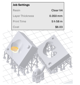 The mold was printed on the Formlabs Form 3 printer, using Clear V4 resin. The print settings are described in Figure 3.