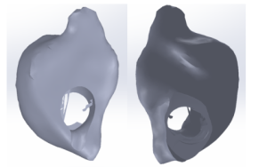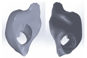 For the initial printing trial, Fused Deposition Modeling (FDM) was used to fabricate the sleeve. A dimensionally accurate 3D model of an AirPod was sourced online and integrated into a 3D modeling software (Blender), alongside the scanned ear model. The two models were overlaid to simulate the placement of the AirPod within the sleeve, and the overlapping volume shared between them was subtracted from the ear model to create a cavity. This modified model was then printed, as depicted in Figure 1. The total print time was just over an hour and only cost 77 cents. The print was oriented with the outer face down to minimize support material on surfaces that will be inserted into the ear. Given the emphasis on maximizing user comfort in the design, Thermoplastic Polyurethane (TPU) was selected for printing due to its flexible properties.