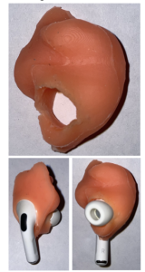 Mass-produced items like AirPods typically employ a standard design and are produced using injection molding techniques. While it may seem efficient to utilize high-speed production processes like injection molding for manufacturing such devices, this approach often results in user dissatisfaction due to the one-size-fits-all nature of the products. Human ear dimensions are variable, with considerable differences in size and shape across individuals. Therefore, the universal model of products like AirPods can lead to issues, such as the earbuds dislodging during everyday activities such as running or walking. Addressing this clear gap necessitates a move towards customization, a key advantage of polymer additive manufacturing.