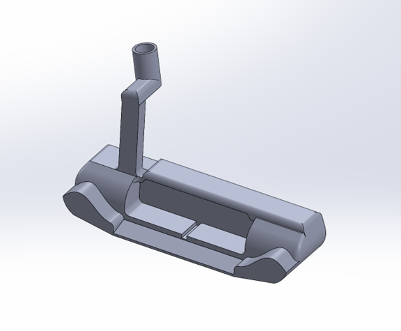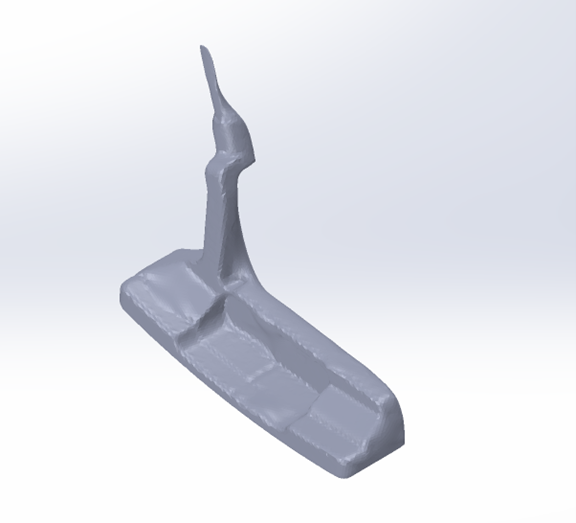It was first required to acquire a 3D model of a putter head for further experimentation with FDM manufacturing processes. The team explored two design paths in parallel: 3D scanning a reference putter head to create a mesh model, and creating a custom parametric model in SOLIDWORKS. The two models would then be tested and evaluated to determine which design approach yields the best results.