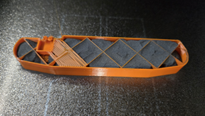 Despite the improvements in geometry and print quality, the second prototype still did not reach the target mass. This outcome reinforced a known limitation of polymer-based fused deposition modeling, where even dense thermoplastics cannot match the weight of metal components without additional modifications. To address this issue, the final prototype used a hybrid manufacturing approach that incorporated metal powder infill. A grid infill pattern was selected to create internal voids, and the print was manually paused at selected layers to allow for the addition of tungsten and brass powder. Printing was then resumed to encapsulate the powders inside the structure. This method effectively increased the mass of the putter head while maintaining the desired geometry and surface finish. However, the cost of tungsten powder is relatively high and may limit the scalability of this approach for large-scale or commercial applications where cost efficiency is critical.